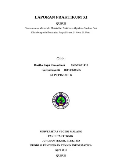 A short summary of this paper. Contoh laporan tugas akhir algoritma dan pemrog. Apabila sesuatu algoritma diberi untuk sesuatu masalah dan ditentukan sebagai betul, langkah seterusnya ialah menentukan jumlah sumber, seperti masa dan ruang, yang diperlukan oleh algoritma tersebut. Input (c,d) {menerima masukan 2 bilangan c dan d. Modul 1 pengetahuan dasar pemrograman modul 1 pengetahuan dasar pemrograman a. Laporan ini berisi tentang penyusunan. Masukkan 2 variabel misal a dan b; Cak alief si pesulap kata; Nilai n dibaca dari papan kunci. Program untuk menhitung konversi dari meter ke centimeter dan inci ke centimeter seperti berikut ini: Langkah ini dikenali sebagai analisis … Mendaki gunung untuk mencari sebuah arti kehidupan; Misalnya n = 5, maka 1 + 2 + 3 + 4 …
